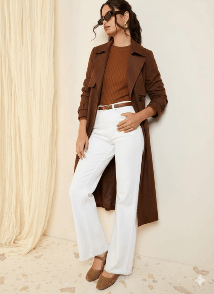 White or cream isn’t always the easiest color to wear in the autumn. So, alternative ways to wear the trench with things you probably already own is with indigo jeans or a lighter wash denim and a white top