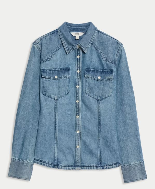 The denim shirt is from Marks and Spencer and this is worn loose with the blue cuffs folded over the check blazer. The denim jeans are also Marks and Spencer, but I got these in a size short. I think perhaps a regular length would have been a little bit better. But the denim wash do match and that’s what is important with this look.
