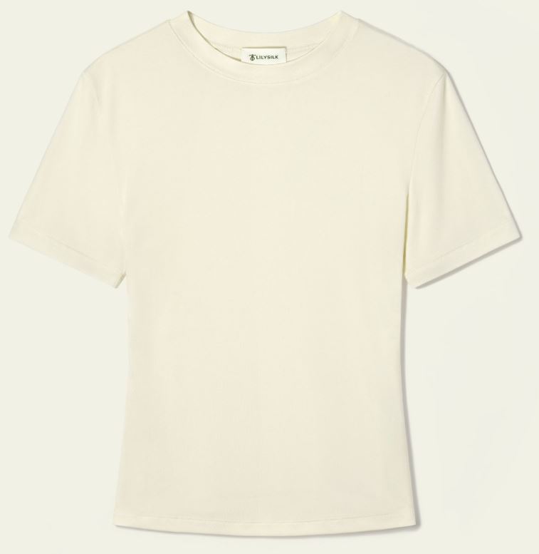 The white t-shirt I’m wearing is from Lily Silk, and this is part of the jersey silk collection that they do. This is reasonably form fitting just so that the outfit doesn’t start to feel too bulky.
