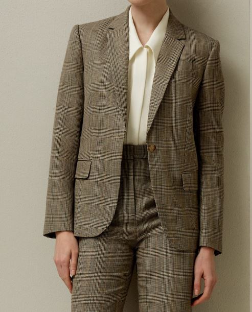 Now, my blazer is also from Lily Silk. It’s single breasted with a single button and it really is a stunning blazer. This crosses over into the country chic look really well if you like that style and worn with riding boots and cozy knit. It’s a terrific country chic outfit.