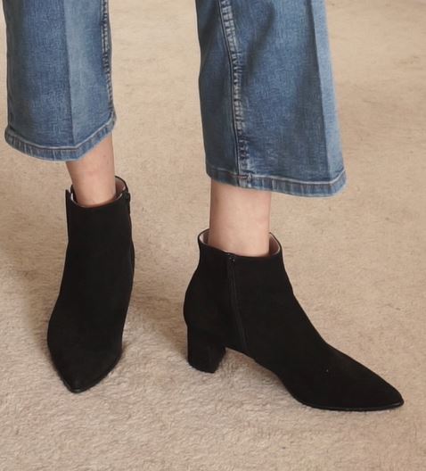 They’re from Ally Shoes in a black suede. They’ve got quite a pointed toe and a really reasonable heel height, so they’re quite easy to walk in. I did also add a black belt to tie in with the black boots just to bring the whole look together.