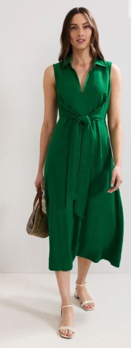 White slingbacks looks feminine and pairing white trainers or ballerinas with your green midi dress creates a fresh, crisp look that adds a modern touch to your outfit.